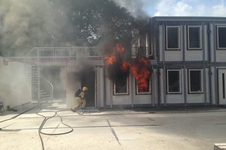 Brandonderzoek red levens. De kennis van brandgedrag en brandverloop is daarvoor essentieel. Een brand uitsluitend simuleren in een container is niet meer van deze tijd. Op de Twente Safety Campus beschikken we over een mooi brandonderzoeksgebouw. Het pand is voorzien van tal van geavanceerde technieken, waardoor we nog uitgebreider en specifieker kunnen testen. Zo is er een uitgebreide sprinklerinstallatie die we op uiteenlopende manieren in kunnen zetten. In het gebouw is er voldoende ruimte om bijvoorbeeld de brandwerendheid van gevelelementen, daken of andere objecten te testen. Daarnaast kunnen we een gebouw, kamer of afdeling exact ‘nabouwen’ om nog realistischer te testen.